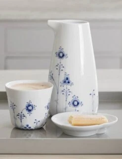 Alfabetkrusene er inspireret af Royal Copenhagens Musselmalet Riflet stel, som er det først stel og er helt tilbage fra 1775. Du kan genkende den klassiske form på højhankskoppen fra 1884.