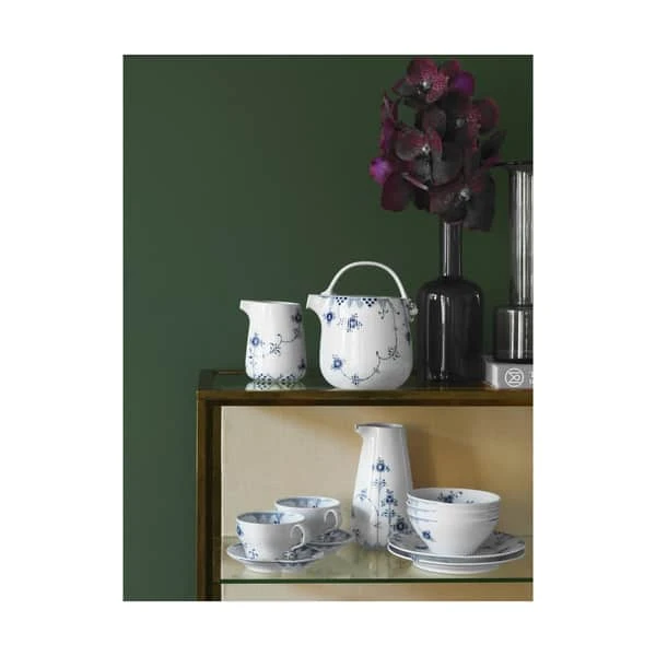 Porcelæn fra Royal Copenhagen har i mere end 230 år glædet mennesker i Danmark og verden over. Med stor respekt for de eksisterende metoder skaber Royal Copenhagen tidens look og mode. Blå Elements enkle og moderne udtryk gør stellet til et perfekt hverdagsstel med et strejf af luksus. Blå Elements serien fra Royal Copenhagen er en moderne kombination af flere Royal Copenhagen klassikere. Stellet har det blå karakteristiske mønster og riflerne, som vi kender det fra det klassiske musselmalede stel, kanten fra Halvblonden og takkerne fra Flora Danica.