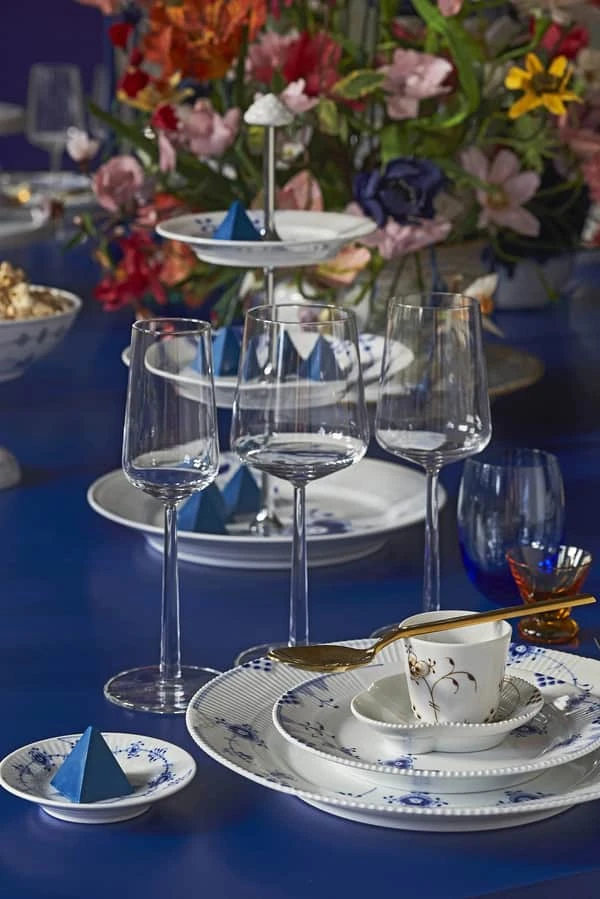 Blå Elements er opstået af Hvid og Multifarvet Elements og blomstrer med inspirerende nye dekorationer i den noble, kongelige blå farve. Resultatet er skønhed – enten alene eller kombineret med Hvid Elements, ligesom stellet kan få et endnu mere legende og moderne udtryk, hvis det kombineres med den traditionelle Musselmalede kollektion.
