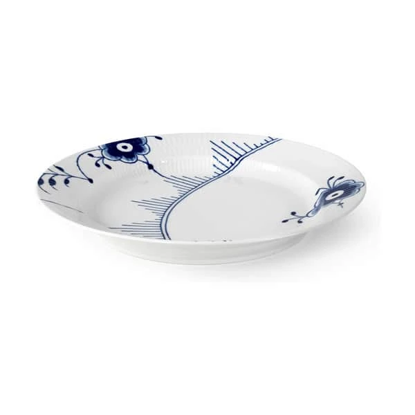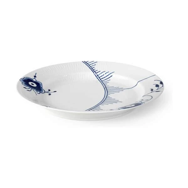 I 2000 skabte Karen Kjældgård-Larsen Blå Mega Mussel serien med inspiration fra det velkendte musselmalet – småt og blåt. Blå Mega Riflet er beviset på, at selv de bedste traditioner kan holde til at blive udfordret – stort og blåt. De store penselstrøg på det hvide porcelæn skaber et sofistikeret og kontrastfyldt udtryk, der klæder det moderne, nordiske hjem.