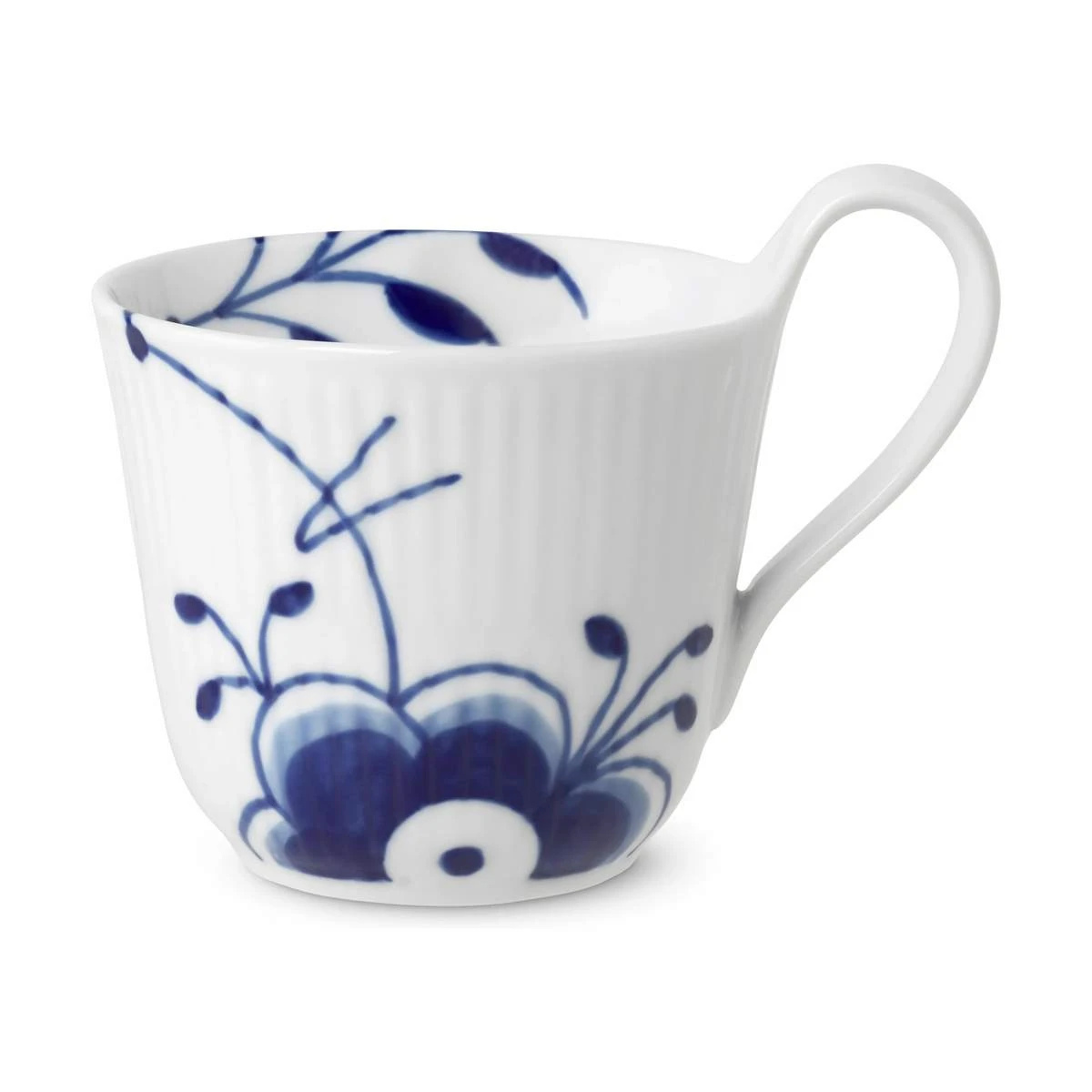 Nyd din kaffe eller te med klasse med Royal Copenhagen Blå Mega Riflet højhankskoppen. Det håndmalede mønster af forstørrede elementer skaber et kontemporært udtryk, der giver et spændende modspil til koppens klassiske formgivning.