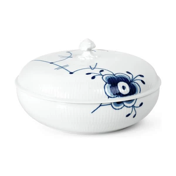 Lad din Royal Copenhagen Blå Mega Riflet skål med låg pryde din borddækning, og overrask dine gæster når du åbner for indholdet.