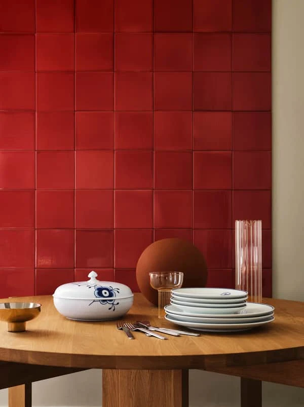 I 2000 skabte Karen Kjældgård-Larsen Blå Mega Mussel serien med inspiration fra det velkendte musselmalet – småt og blåt. Blå Mega Riflet er beviset på, at selv de bedste traditioner kan holde til at blive udfordret – stort og blåt. De store penselstrøg på det hvide porcelæn skaber et sofistikeret og kontrastfyldt udtryk, der klæder det moderne, nordiske hjem.