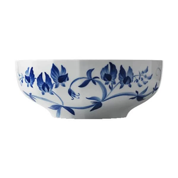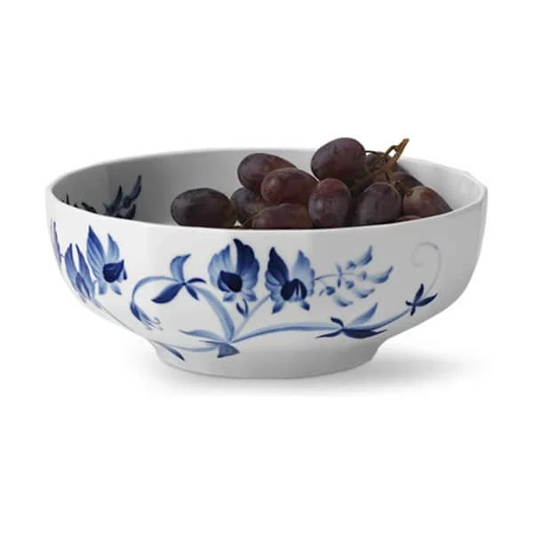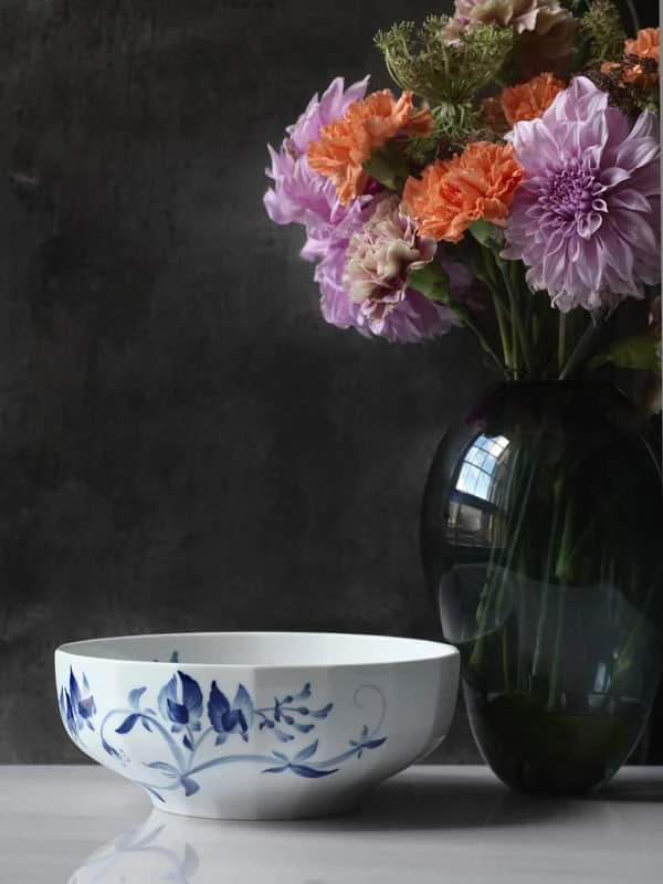 Ærteblomsten vokser vildt og viltert op ad Blomst-skålens fine kanter. Skålen fra Royal Copenhagen har en moderne coupé-form, som møder sin kontrast i det klassiske blå blomstermotiv. Server delikate chokoladetrøfler i skålen fra Blomst.