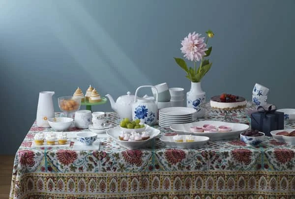 Dronningen af blomster, den majestætiske træpæon, pryder tekanden fra Royal Copenhagen. Tekanden er et hovedelement i Blomst-serien. Det afbalancerede design er inspireret af asiatiske fletkurve, hvor små, diskrete detaljer fremhæver tråden til det traditionelle asiatiske stentøj, hvor det blå blomstermotiv umiskendeligt er en hyldest til det traditionelle Blå Blomst-motiv.