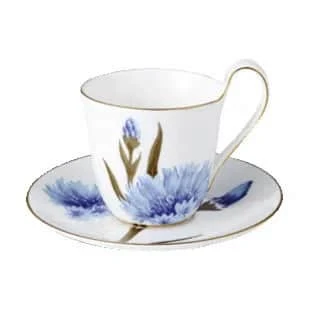 Denne kop med underkop bærer kornblomst som motiv