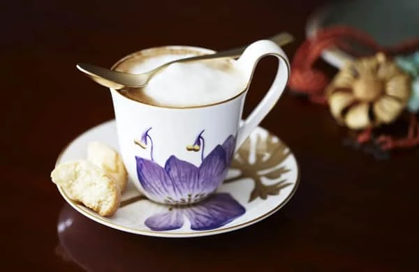Grundet koppens guldkant anbefaler Royal Copenhagen, at du vasker Flora af i hånden.