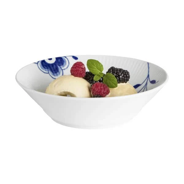 Med History Mix fra Royal Copenhagen får du 3 dybe tallerkener med de ikoniske håndmalede mønstre Musselmalet Riflet og Blå Mega Riflet samt den klassiske og elegante Hvid Riflet. De dybe tallerkener er praktiske til portionsanretninger af salater, desserter og som morgenmadsskåle, og du får samtidig et stykke dansk designhistorie, der guider dig og dine gæster igennem Royal Copenhagens udvikling igennem årene. History Mix er et flot supplement til din samling og det perfekte gavesæt til Royal Copenhagen-entusiasten.