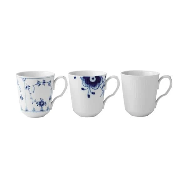 Når du ikke kan bestemme dig for, hvilken Royal Copenhagen serie du bedst kan lide, kan du heldigvis få en af hver. Denne History Mix 3-pak krus består af tre elegante krus fra hver deres serie. Kopper og krus fra Royal Copenhagen fuldender borddækningen i fantasifulde kombinationer. Tradition og nutid – klassisk og moderne design.