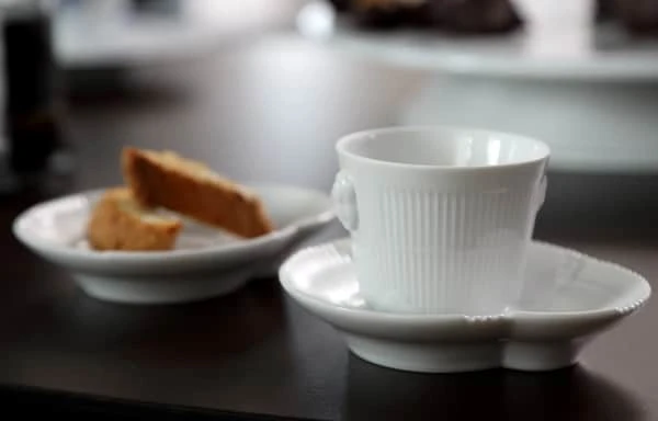 Med espressokoppen i Hvid Elements stellet kan du nyde en lækker espresso og med underkoppen er der plads til en lille kage ved siden. Lige til at dyppe i kaffen.