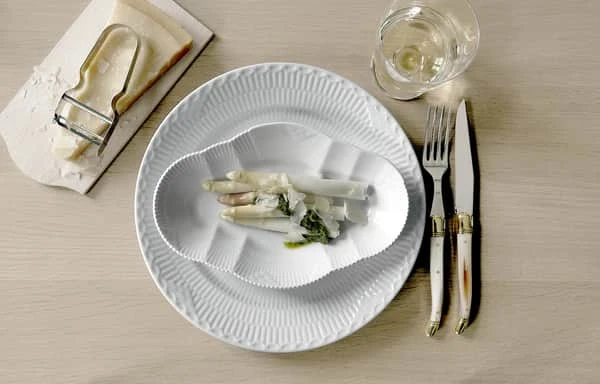 Det Hvide Elements fad fra Royal Copenhagen er den perfekte tomme ramme for lækkerier af enhver slags. På egen hånd er Hvid Elements elegant og enkelt, og inviterer til at blive fyldt med festlige retter i friske farver.