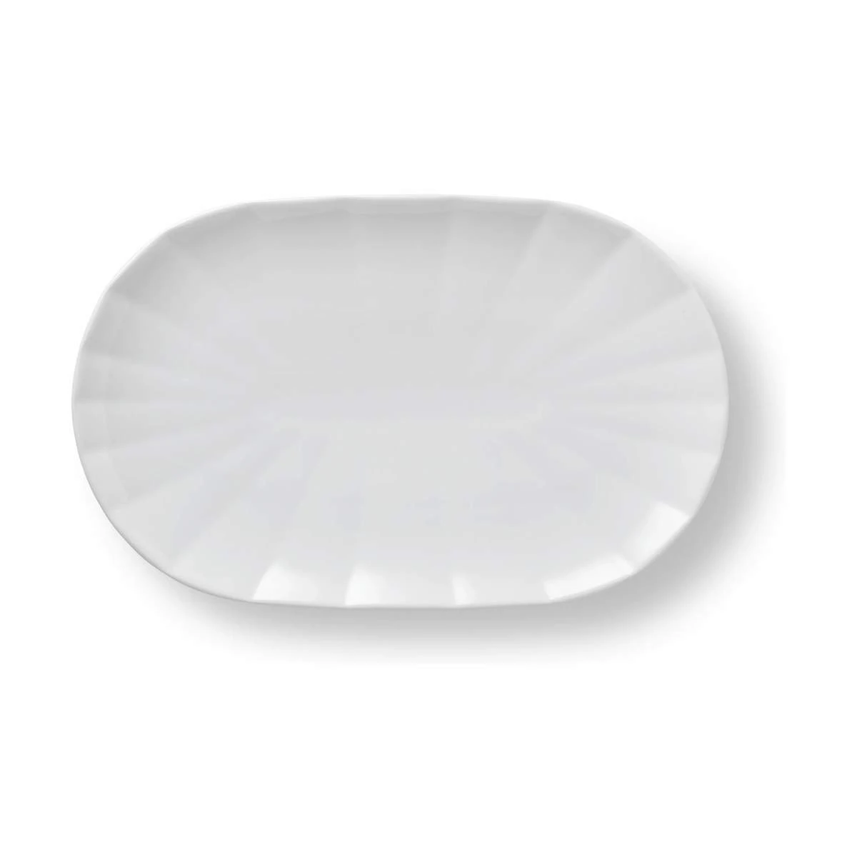 Servér lækre sager med Hvid Facet fadet fra Royal Copenhagen, og du er sikret en klassisk og elegant servering.