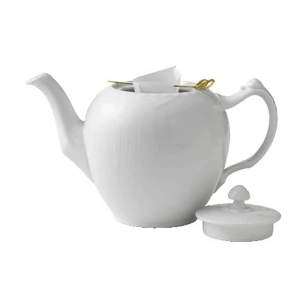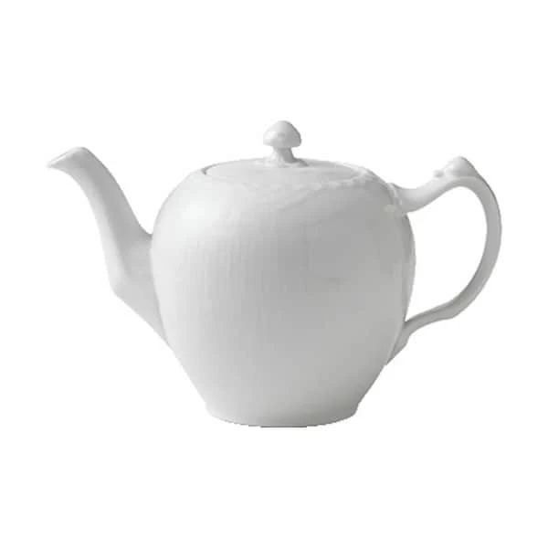 Tekanden fra den romantiske Hvid Halvblonde serie fra Royal Copenhagen vil klæde sofabordet, når du skal servere te for dig selv, din familie og dine gæster. Tekanden har de klassiske rifler og er dekoreret med den romantiske halvblonde langs kanten, hvilket gør Hvid Halvblonde tekanden til et meget elegant stykke porcelæn.
