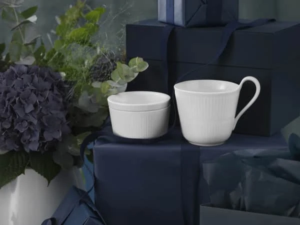 Royal Copenhagens Hvid Riflet serie har hurtigt vokset sig op og er blevet en moderne klassiker. De ikoniske rifler fra det Mussenmalede stel, er her fremstillet i en serie for sig. Enkelt, rent og elegant.