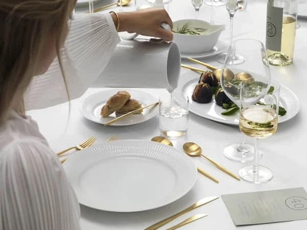 Server de lækreste kager til dine gæster på fine kagetallerkener som denne fra Royal Copenhagens serie Hvid Riflet.