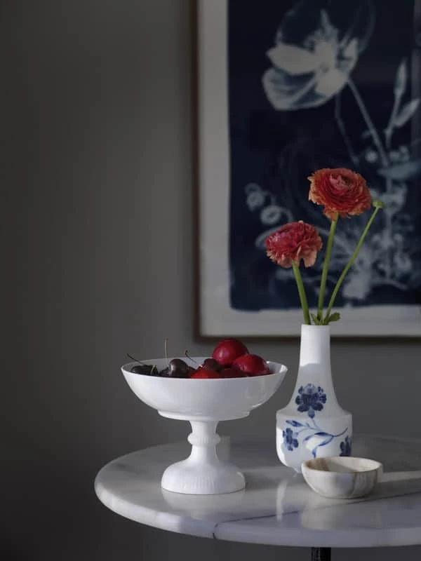 Hvid Riflet fra Royal Copenhagen er elegant i sig selv, men denne skål på fod er noget for sig. Skålen er en skønhed, som vil pryde ethvert bord, men den kan også sagtens sættes i selskab med de øvrige stel fra Royal Copenhagen. Skålens minimalistiske og enkle design giver de ikoniske rifler i porcelænet lov til at stråle. Den er evigt klassisk.