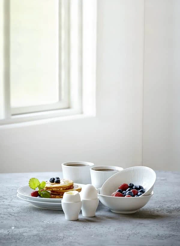Royal Copenhagens Hvid Riflet serie har hurtigt vokset sig op og er blevet en moderne klassiker. De ikoniske rifler fra det Mussenmalede stel, er her fremstillet i en serie for sig. Enkelt, rent og elegant.