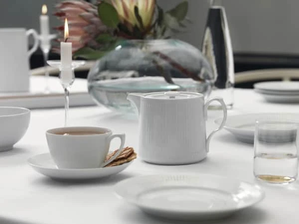 Hvid Riflet serien har et klassisk og moderne udtryk og kan nemt kombineres med resten af Royal Copenhagens mange fine stel – både de sorte og de blå. Skab et stilrent udtryk ved at kombinere med andet stel fra Hvid Riflet serien eller skab et mere personligt look ved at kombinere på kryds og tværs.