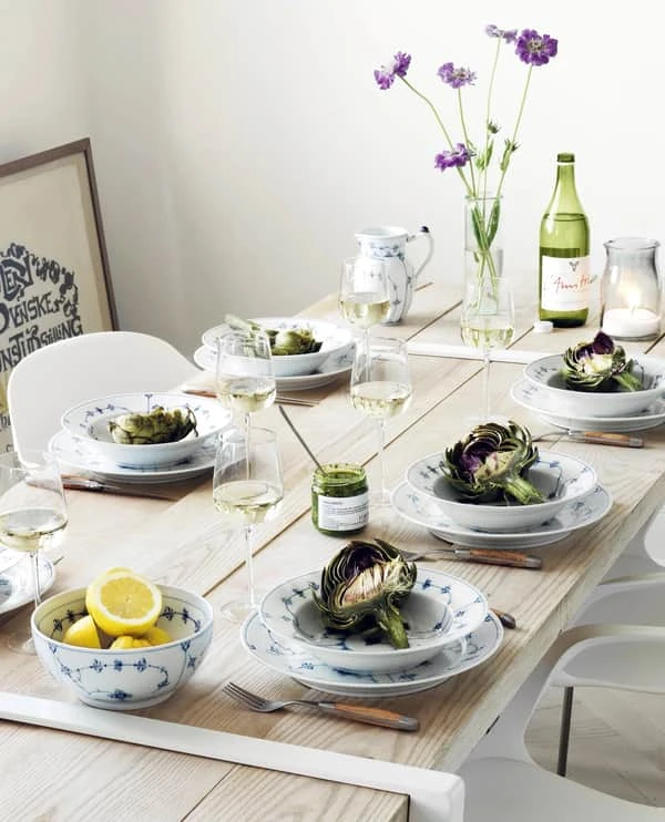 Tip: Du kan sagtens kombinere stellet med andre serier fra Royal Copenhagen. F.eks går stellet rigtig godt sammen med det Hvid Riflet stel, hvor det vil få lov til at stjæle opmærksomheden med sit yndige blå mønster.