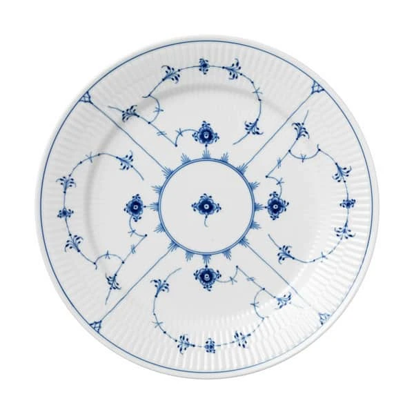 Royal Copenhagen tallerken i Musselmalet Riflet-serien er endnu en klassiker til din samling. Kombiner med resten af Musselmalet Riflet stellet til en skøn borddækning med smagfulde anretninger til dem, du vil imponere.