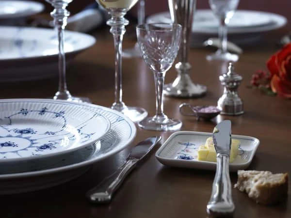 Musselmalet Riflet er et tidløst stel. Det kan bruges hver dag som basis for en unik kollektion af Royal Copenhagens porcelæn, hvor det traditionelle mikses med det moderne. En evig klassiker.