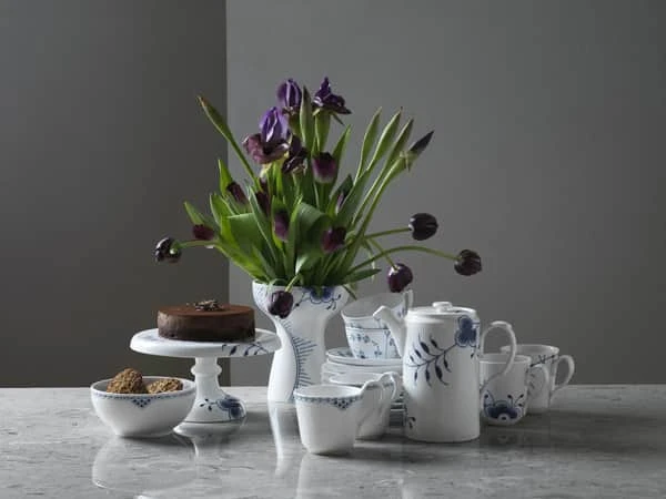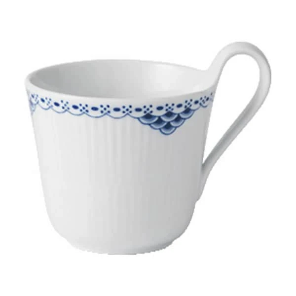 Royal Copenhagen har skabt en højhankskop uden underkop med stor kapacitet, der kombinerer den klassiske Royal Copenhagen form med den moderne måde at drikke. Drik eftermiddagskaffen i den romantiske og traditionelle højlandskop fra Royal Copenhagens Prinsesse stel.