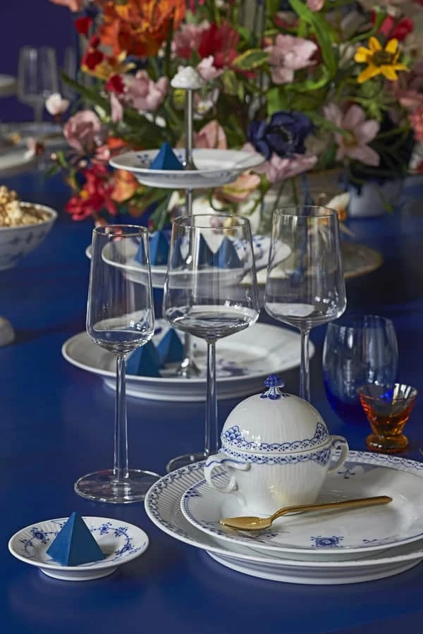 Prinsessestellet er feminint og håndmalet. Kendetegnet er en forfinet blå kniplingebort, som du sikkert genkender fra Royal Copenhagens klassiske musselmalede porcelæn. Det håndmalede Prinsessestel fra Royal Copenhagen så oprindeligt dagens lys som et te-stel, men siden 1978 har det været et fuldt spisestel, der kan give din servering af hverdagens hofretter et elegant løft.