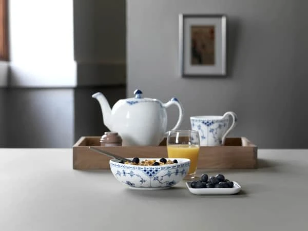 Prinsessestellet er feminint og håndmalet. Kendetegnet er en forfinet blå kniplingebort, som du sikkert genkender fra Royal Copenhagens klassiske musselmalede porcelæn. Det håndmalede Prinsessestel fra Royal Copenhagen så oprindeligt dagens lys som et te-stel, men siden 1978 har det været et fuldt spisestel, der kan give din servering af hverdagens hofretter et elegant løft.