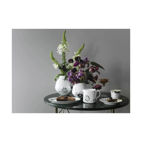 Sort Mega Riflet er håndmalet porcelæn fra Royal Copenhagen. I 2006 skabte Karen Kjældgård-Larsen Mega Mussel serien med inspiration fra det velkendte musselmalet – småt og blåt. Sort Mega Riflet er beviset på, at selv de bedste traditioner kan holde til at blive udfordret – stort og sort. De sorte penselstrøg på det hvide porcelæn skaber et sofistikeret og kontrastfyldt udtryk, der klæder det moderne, nordiske hjem.