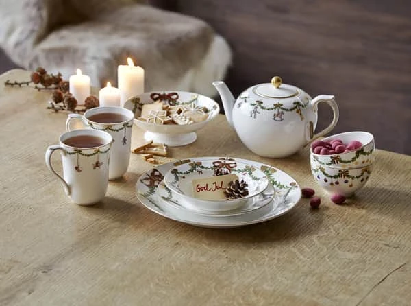 Stjerne Riflet serien fra Royal Copenhagen er stellet, hvor alt det bedste fra julen er samlet. Smukke guirlander hænger side om side med gaver og traditionelt julepynt – en klassiker i julen. Den smukke kollektion er skabt med inspiration i et stel, der blev produceret første gang i 1895, og i dag pryder Stjerne Riflet juleborde overalt i kongeriget.
